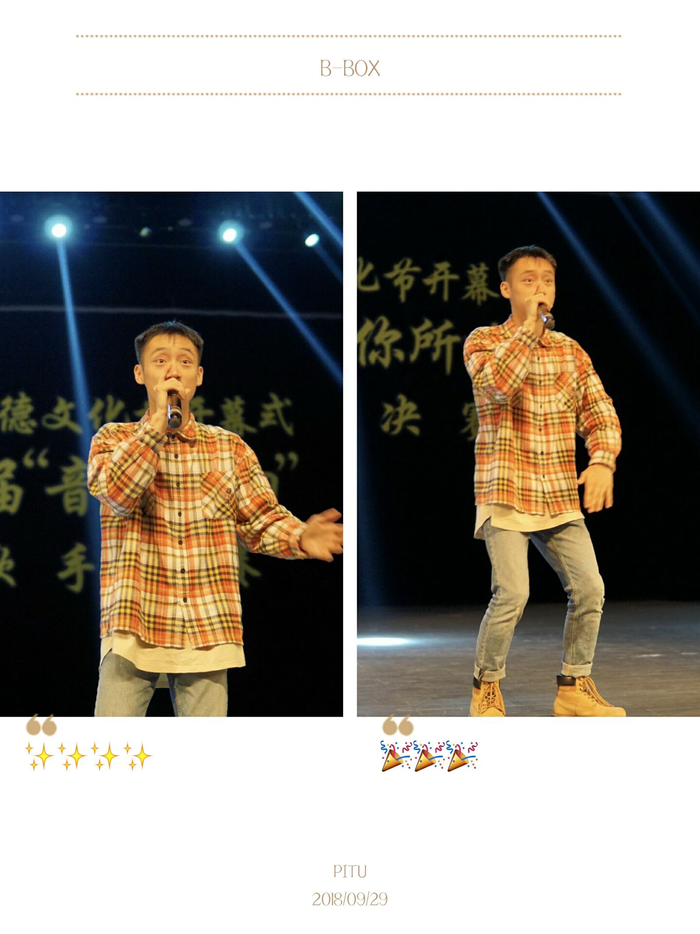 第一轮比赛结果公布之后,金旭学长所表演的B-box,舒缓了比赛紧张的气氛,并赢得场上观众的欢呼声。