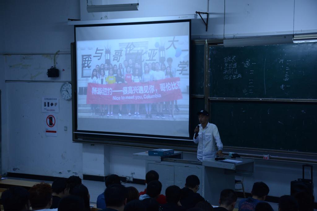 第二位上场的是李典奎同学,他通过了学校的“哥伦比亚大学交换”项目考核,在暑假里去美国进行了游学交流活动。