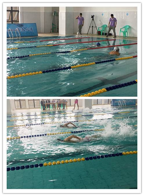 比赛,由男子五十米自由泳拉开了序幕,五十米自由泳考验的是选手的爆发力,我们系的参赛员分别是第二组第一道的唐焕之和第三组第四道的施路并取得了第五名33秒59和第三名31秒75的佳绩,为我们院系起了一个好的开端,紧接着是男子五十米蛙泳,相对于自由泳而言,蛙泳会更为费力,我们院系由第一组二道王黄熹和第二组五道金兴兴出战,分别取得了第三名41秒94和第四名42秒57的佳绩,接着就是我们的女队员出战,周姝婕代表中德参加了女子25米蛙泳,虽然没取得好的名次,但是仍为她在比赛中努力拼搏的精神点赞。