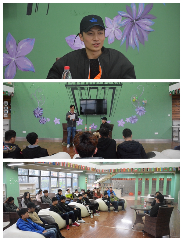 2017年12月14日下午4点整,本学期的“校友·成才”主题交流论坛在中德书屋成功举办。2015级辅导员蒋志强老师邀请到了2017届毕业生陈凯文学长来为大家分享自己的故事。