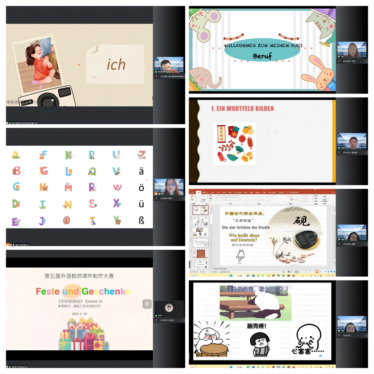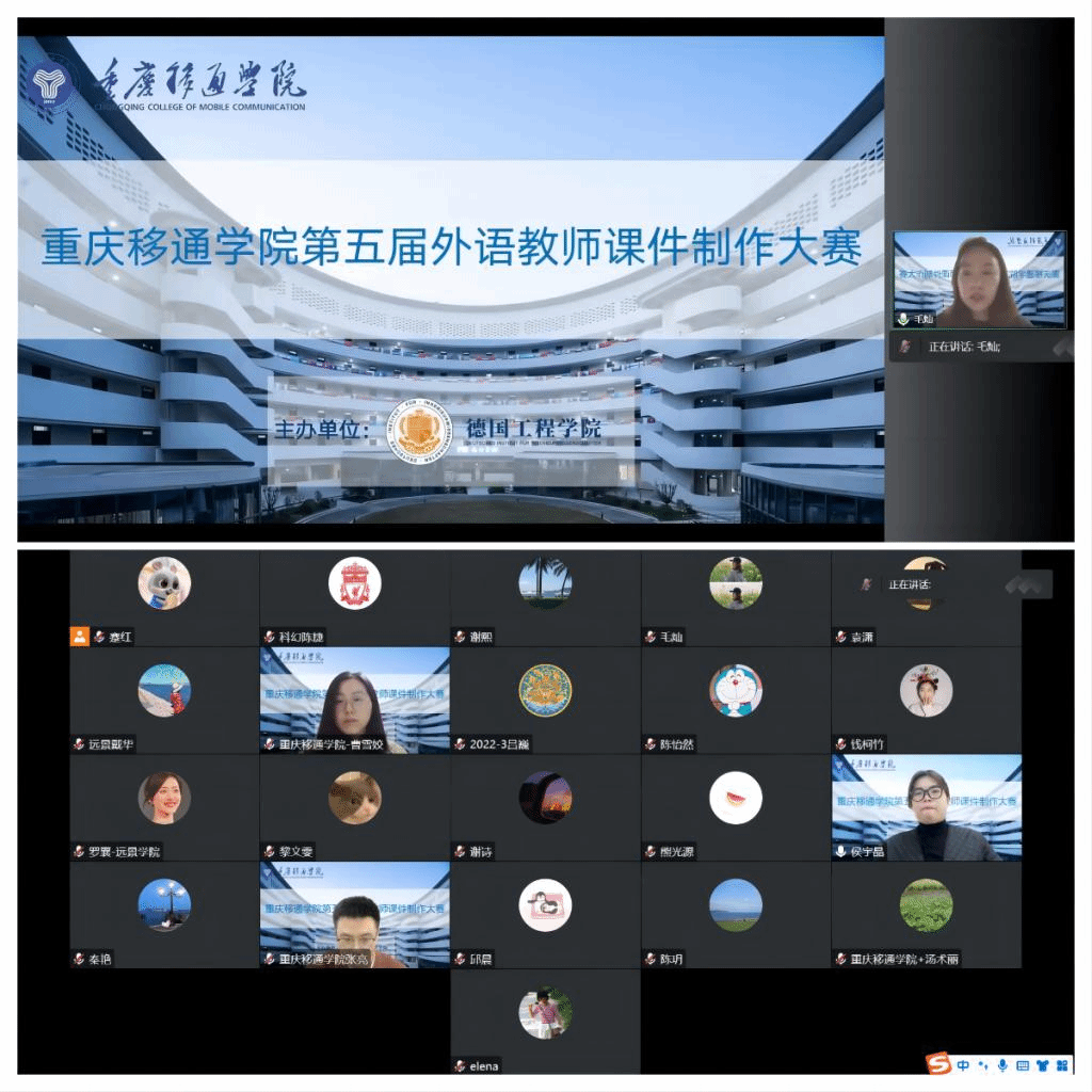 近期受疫情影响,多所高校都采取了线上授课的方式,线上教学需要吸引学生注意力、保障课堂教学质量,生动有趣的多媒体课件尤为重要。为提升外语课堂教学效率和吸引力,鼓励外语教师继续提高教学技能,11月30日下午15时德国工程学院举办了第五届外语教师课件制作大赛。来自德国工程学院、外国语学院以及远景学院的16名外语老师参加了本次线上比赛。本次竞赛的评委有钓鱼城科幻学院副院长陈捷,德国工程学院副院长侯宇晶,外语学院德语专业教研室主任熊光源,远景学院语言与社会科学教研室主任戴华。