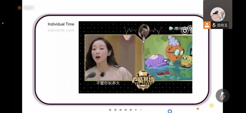 最后来到了双人配音阶段,由田宛玉老师带领学生一起为西游记英文版配音,一个人饰演两个角色,师生联动共同完成。同学们都不禁发出感叹:“我们平时经常看的西游记原来还有英文版本呀!”“这几句台词的翻译也太有趣了吧!”通过趣味性的配音片段,同学们都增加了对英语学习的兴趣。