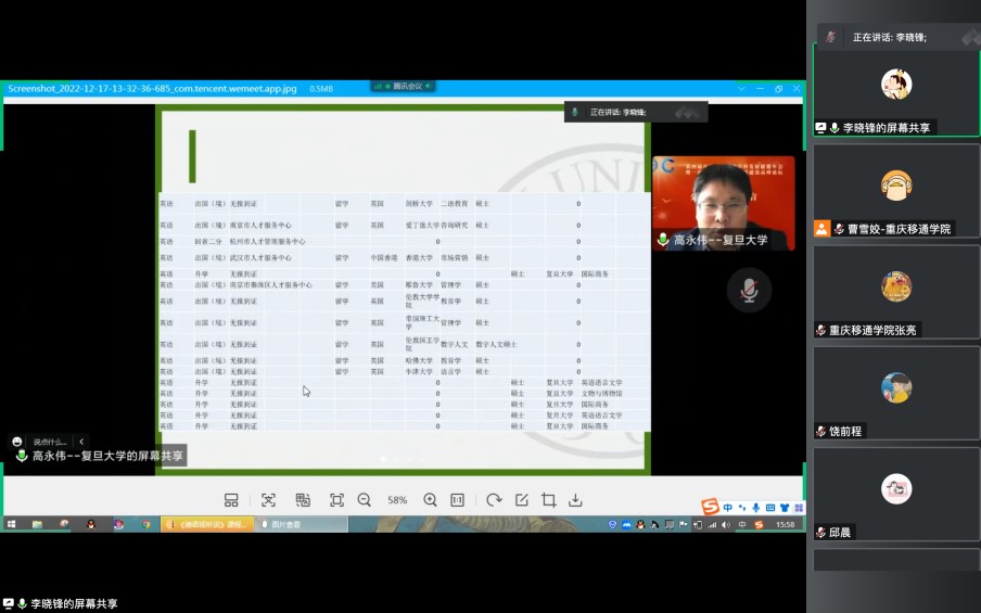 会议第二项议程为分享交流。上一周周末,第四届中国高校外语学科发展联盟年会暨一流外国语言文学学科建设与发展高峰论坛在上海外国语大学举办,会议围绕“学习贯彻二十大,推动外语学科新发展”的主题,共设7场主旨发言,6个分论坛。近百所知名院校的200余名外语学科专家相聚云端,共同探讨新时代外语学科的新发展议题。教学团队组织专人进行了观看学习并于本次会议进行分享交流。