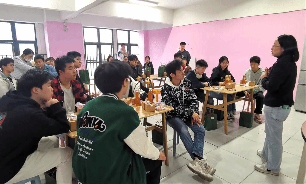 活动伊始,德工导师们亲切地关心了同学们的学业和生活,与同学们沟通交流近来的学习生活情况。接着,“德国通”陈攀老师分享了她多年留学德国的学习、生活和工作经历。陈老师谈到,由于饮食文化上的差异,她在德国留学期间,多数时间都会自己动手做饭、做糕点,自己的厨艺以及烘焙技术也在那段时间得到提升。陈老师表示,德国是工业大国,是欧洲工业、制造业最发达的国家,同时也是中国最重要的贸易伙伴之一,希望同学们能利用好学院中外合作办学项目的平台,走出国门,看看外面的世界,拓宽自己的视野,成为多元文化认知的国际化复合型人才。