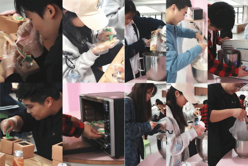 在精彩的导师分享之后,活动进入高潮环节——烘焙学习。首先,烘培师傅向师生们展示了如何制作蛋白霜、黄油饼干和花型糕点;然后,学生们在导师的指导下戴上手套,开始学习如何将彩色蛋白霜挤在饼干表面:粉色蛋白霜描出花型,而绿色蛋白霜则用来描绘叶子,如同一朵朵美丽的郁金香,令人垂涎欲滴。经过同学们一双双巧手制作,一个个别出心裁、饱含新意的饼干很快摆上烤盘,送进烤箱。很快,香飘四溢的饼干被端上桌,每个同学都惊讶自己的烘焙首秀居然会如此的成功。