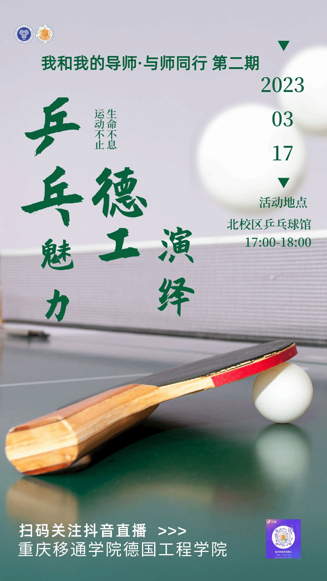 生命不息,运动不止。3月17日下午17时,德国工程学院“我和我的导师·与师同行”系列活动第二期在北校区乒乓球馆举行。重庆移通学院校长助理兼德国工程学院院长尹浩亮,德国工程学院项目导师向觅、莫晓雯、袁潇、蹇红和部分学生参与活动。本次活动将全程通过抖音进行直播。