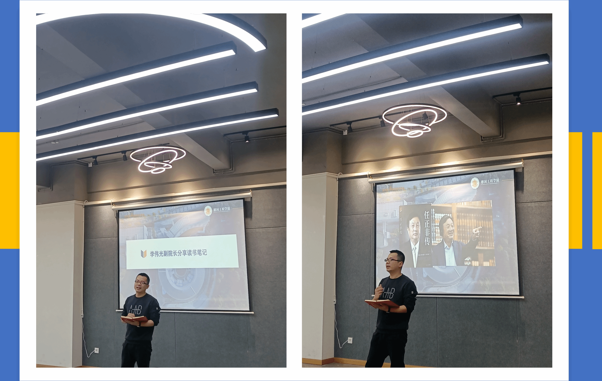 接下来李伟光院长就《任正非传》进行分享。李院长简单介绍书的章节设置及亮点内容,分享了在阅读前后对华为的印象对比,并着重谈到如下四点:将解决困难当成工作常态,脚踏实地,体现个人价值,同时对比霍洛维茨《创业维艰》作者观点,总结学会应对困难的心态及解决困难的方式方法;总结书中体现的管理方法,尤其是对团队工作目标的制定;任正非对团队执行力的标准和要求,与Facebook的公司企业文化作相似性对比;以客户为中心的价值观,同时结合我院学生教育管理服务工作,分享如何助力学生成长的观点。