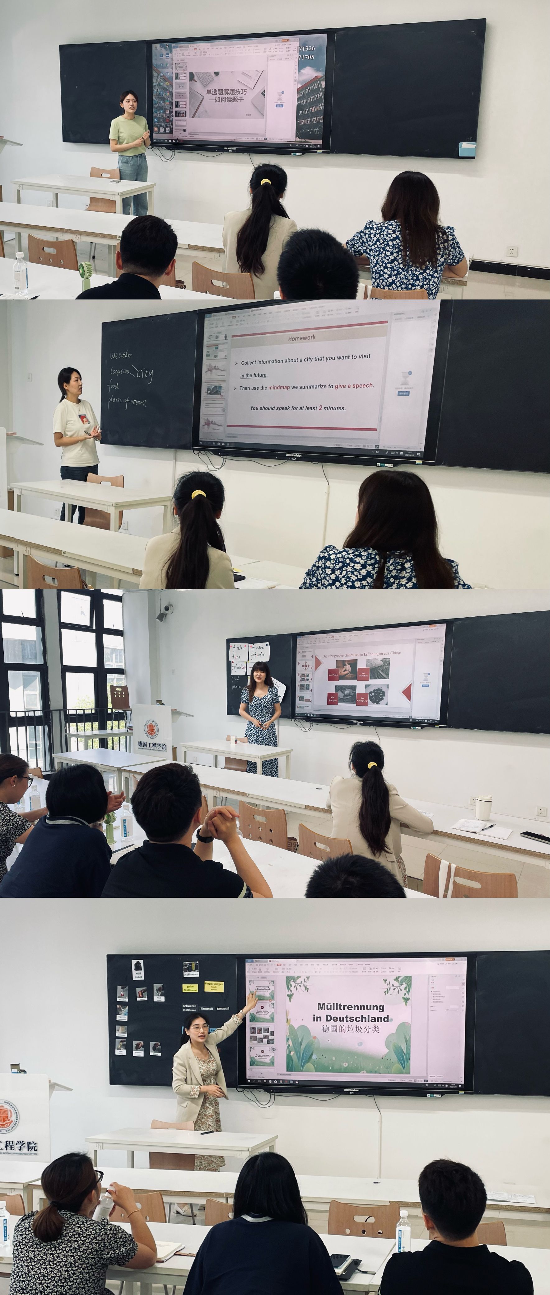 为全面提升教师教学竞赛水平,赛出风采,赛出水平,落实学校“老带新”帮扶计划,4月19日,德国工程学院青年教师教学竞赛复赛培训暨新进教师系列培训活动第九期于六教6205教室举行,德国工程学院副院长侯宇晶、机械双语教学教研室主任谭劲秋、欧标德语教研室主任张亮、德语视听说教学团队负责人曹雪姣、院督导王琥及雅思英语教研室陈西楠老师出席本期培训活动。