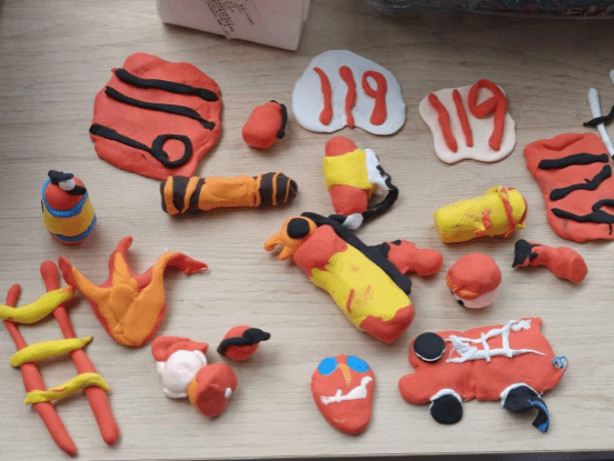 同学们跃跃欲试,纷纷来到消防堆堆乐DIY处,利用太空泥和塑料瓶等材料,捏造各式各样消防器材、消防员和消防车等消防形象,同学们奇思妙想,最终成品都活灵活现,可爱灵动。通过手工制作,引导同学们加深对消防安全的认识。