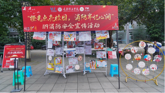 文创展示区是移通学子对消防安全意识的体现,有精美绘画、也有手工扇面、亦有定制徽章,一件件作品融入消防元素,通过艺术形式并以独特视角向大家展示了移通学子对消防员的敬佩和对消防安全的认识。