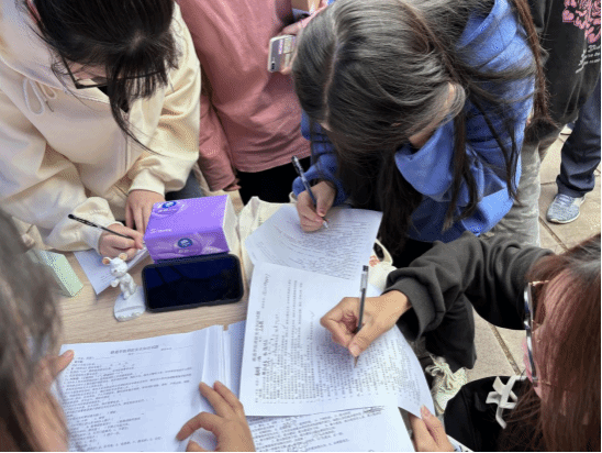 不远处的消防知识答题处,吸引不少同学前来参加。该环节主要围绕日常消防安全、消防标识认领、寝室消防安全注意事项等问题展开,循序渐进式的引导同学们关注校园生活安全,留意身边安全隐患,尽可能避免发生消防安全事故。