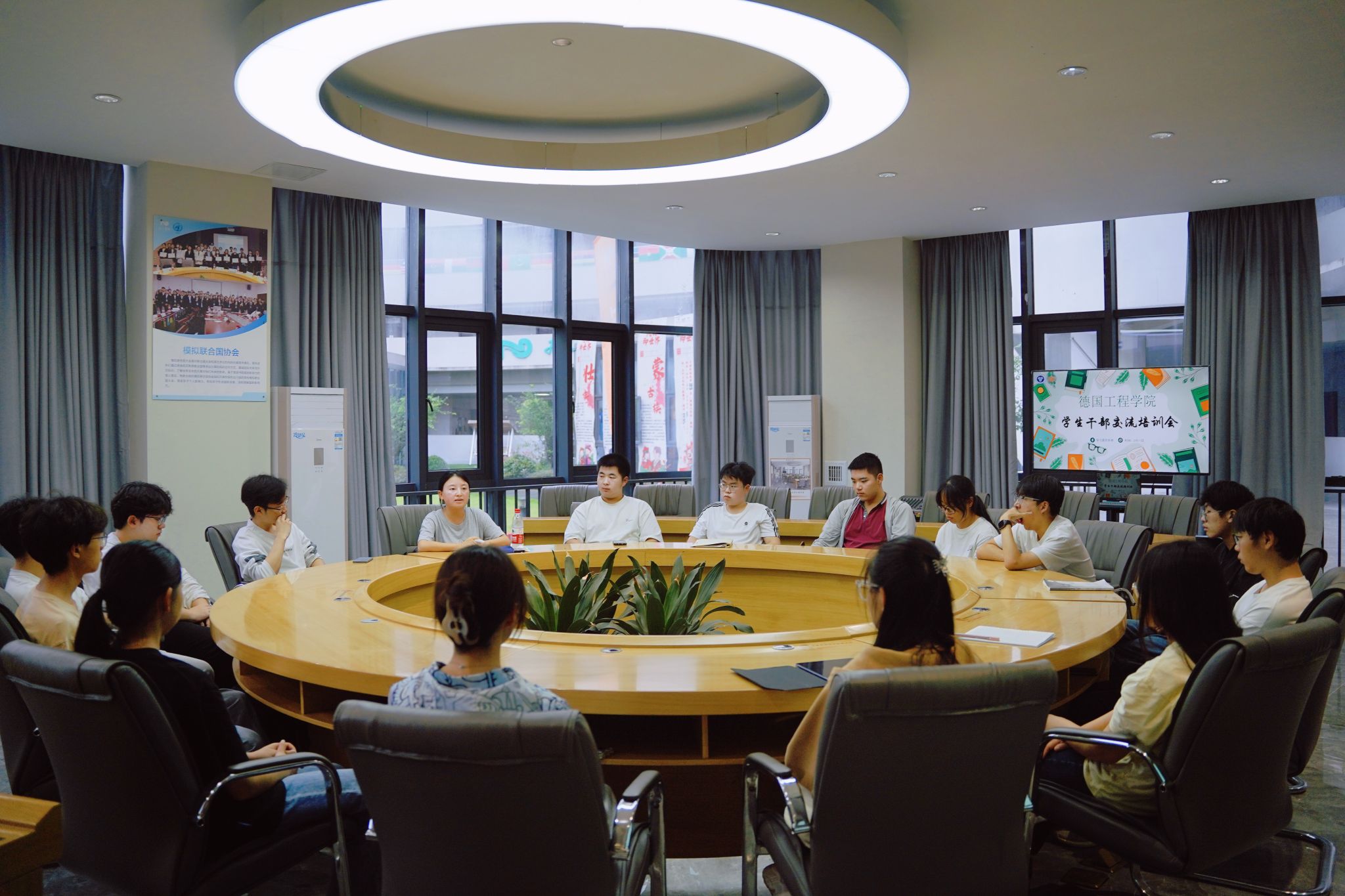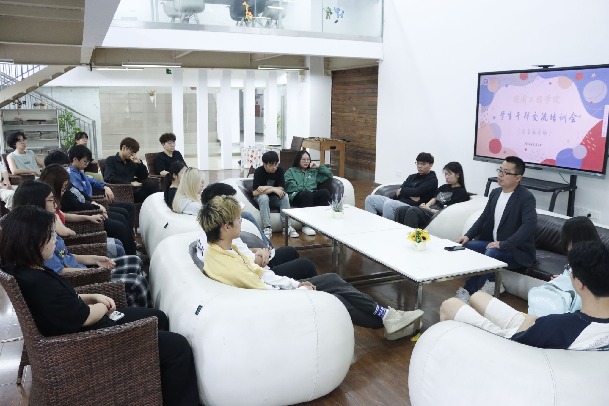 业精于勤,荒于嬉;行成于思,毁于随。青年大学生作为新时代中坚力量与社会发展后备军,要时刻保持积极进取与昂扬斗志。而学生干部作为学生中的骨干,日常发挥班级模范作用,更需要对其加强思想引领与素养提升教育。为此,德国工程学院于5月11日下午16:00,在德工会议室、中德悦读圈、南湖书院中德创意工坊三个地点开展以“明学习之规·筑思想之志”为主题的学生干部培训交流暨院长座谈会。会上邀请到德国工程学院副院长侯宇晶、学工副院长李伟光、教学副院长谭劲秋以及2022级、2023级各班级班干部们。