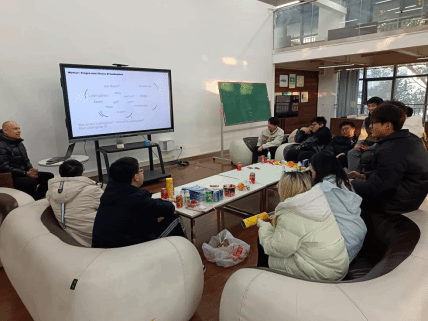 活动一开始,Julio老师用德语进行了简短的节日介绍,并教授了与元旦和假期相关的德语词汇,如“das Neujahr”(元旦)、“die Ferien”(假期)等。他还详细讲解了德国的元旦与中国的不同,并分享了自己对于中国元旦的理解。随后,同学们用简单的德语句子进行了节日和假期介绍。