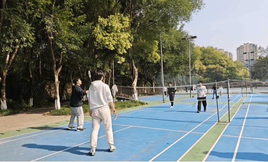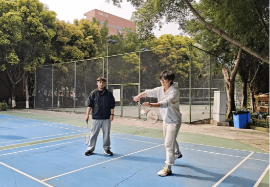 活动伊始,导师精心准备了一场别具一格的“德语小课堂”。在羽毛球场边,导师手持羽毛球拍和球,用流利的德语向学生们介绍着羽毛球运动中的专业术语。从“羽毛球”(“Badminton”)到“发球”(“Aufschlag”)、“击球”(“Schlag”)等词汇,再到各种战术和计分的德语表达,学生们听得津津有味。导师的讲解生动有趣,结合实际动作演示,让抽象的语言知识变得鲜活起来。学生们也积极互动,用新学的德语词汇尝试交流,现场气氛热烈。这种将语言学习与体育运动相结合的方式,不仅拓宽了学生的知识面,还激发了他们对德语学习的兴趣,让他们在轻松愉快的氛围中感受语言的魅力。