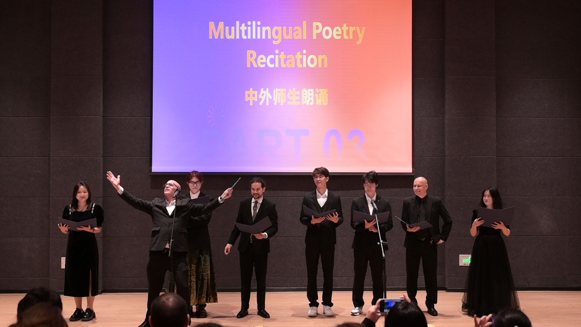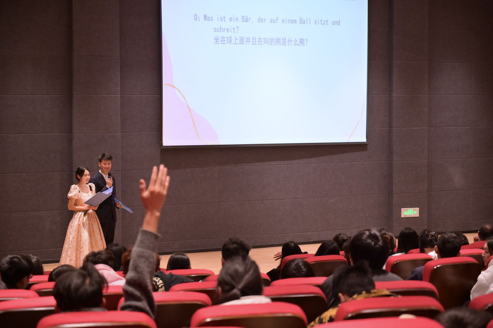 典礼尾声,一段由中外师生共同完成的三语朗诵缓缓响起。中文、英文、德语交替呈现,句句传达着对语言、对未来、对梦想的热爱。
