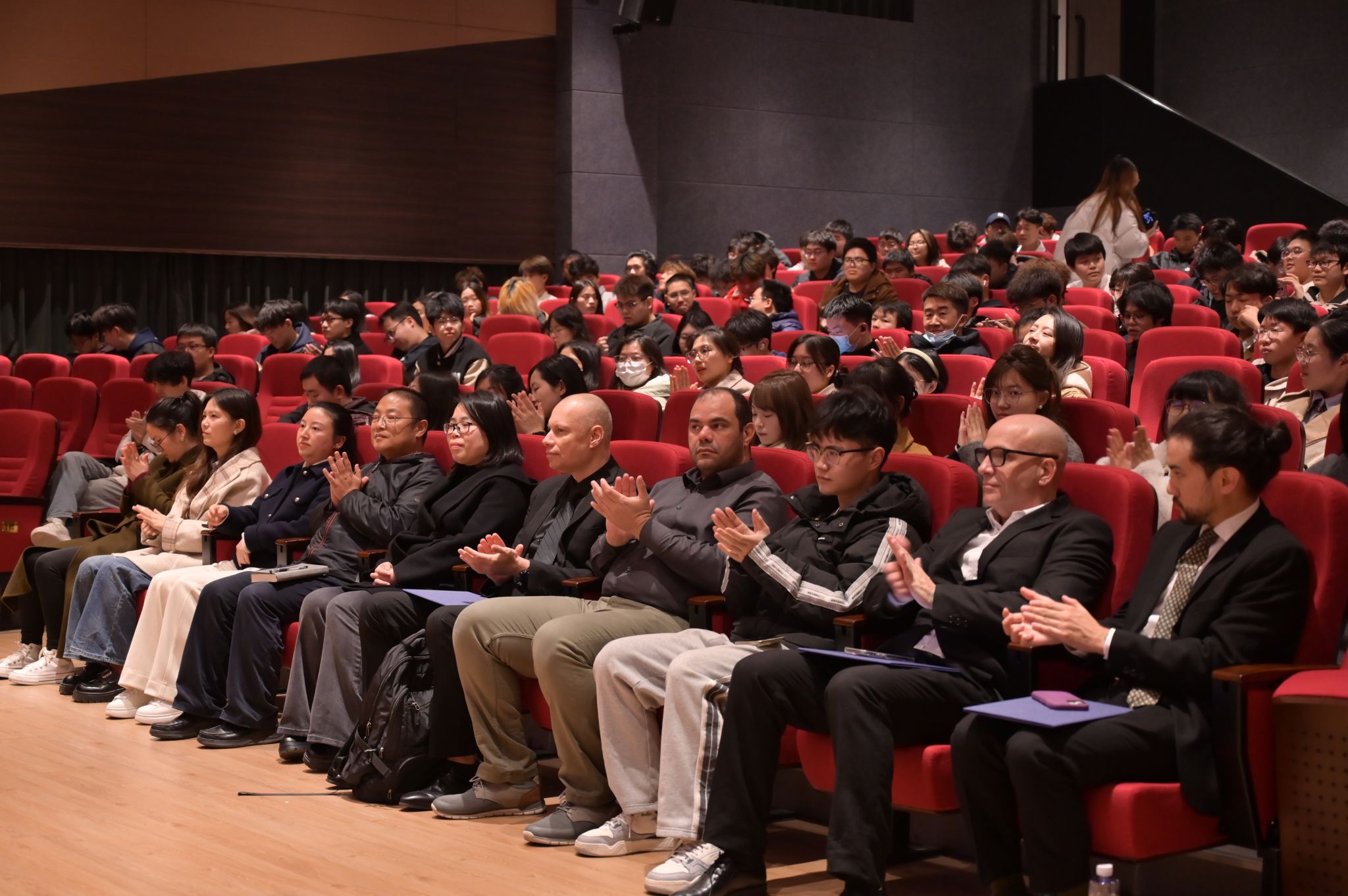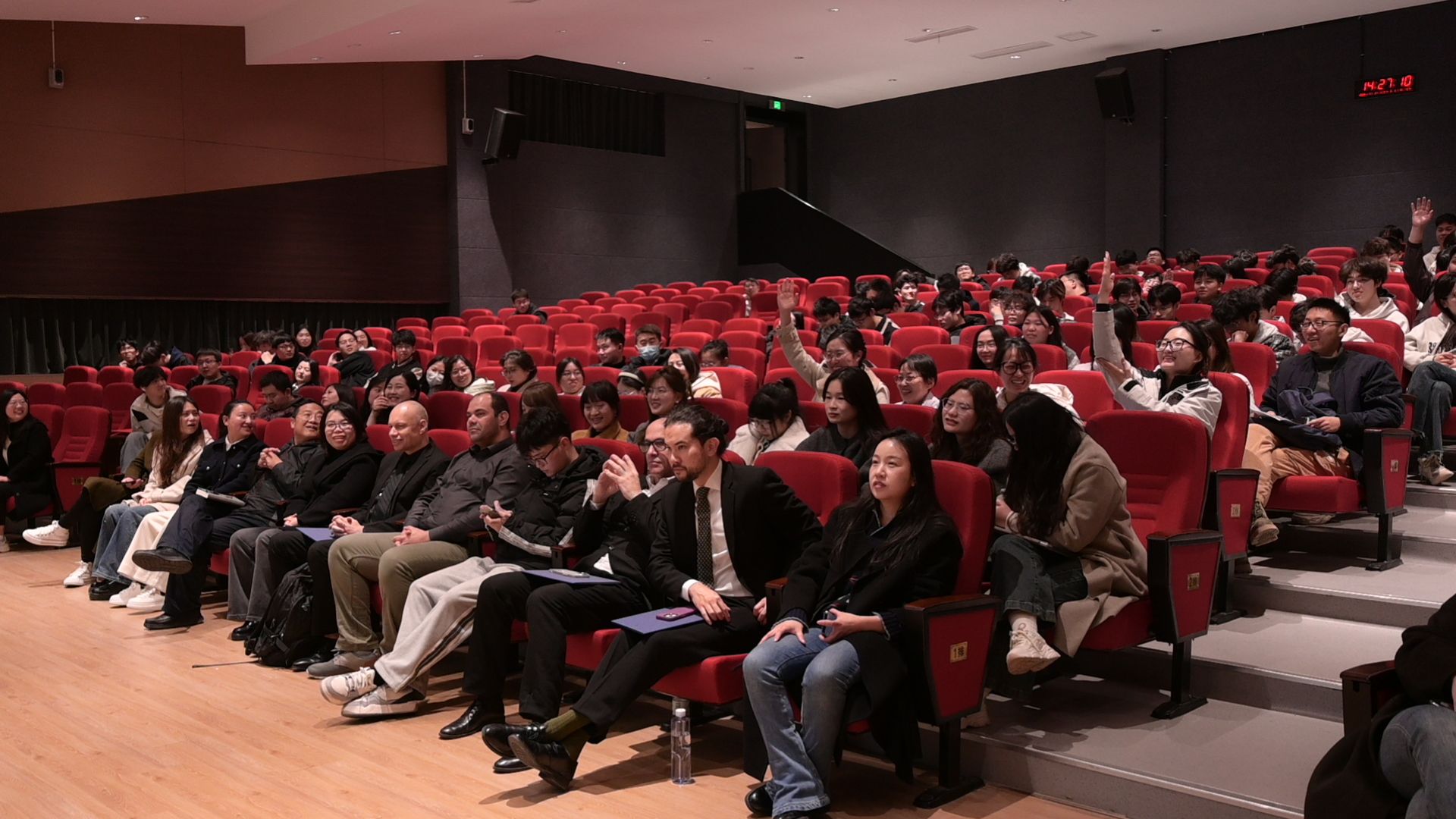 紧张与仪式感之外,这场典礼也有轻松的节奏。在主持人的带领下,同学们和老师们一起参与了一段轻松而巧妙的思维小游戏。同学们在笑声中打开状态,也更有节奏地投入接下来的典礼进程。轻松与庄重交织,这是中外合作办学项目特有的文化氛围和组织温度。