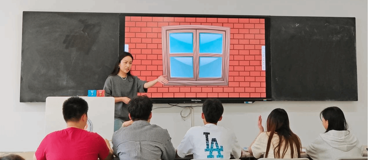 毛灿老师以德语A1课程第4单元《Menschen und Häuser》为主题,以“房屋互动之旅”为主线,创新设计运动游戏与闯关任务,将房间词汇、第四格冠词及句型训练融入趣味互动。课堂通过“走进房间”“听声音猜单词”,互动冒险闯关答题等环节,让学生在动态实践中掌握词汇和语法规则;在互动冒险活动中巩固复习所学知识点,激发学生的知识运用能力。教师以游戏为媒介,巧妙化解语法抽象难题,学生参与度显著提升,实现了“玩中学、学中用”的教学目标。