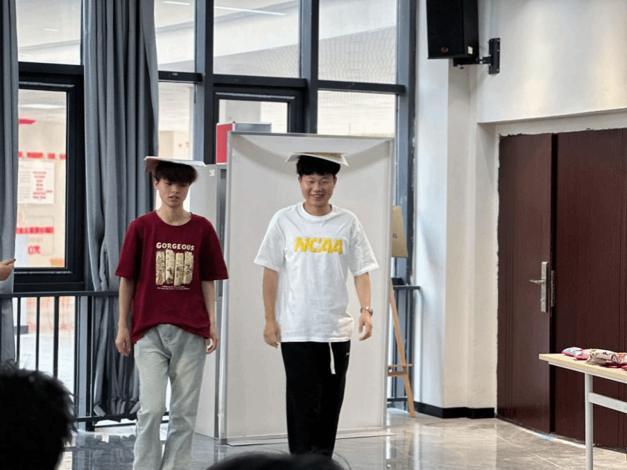 学生头顶德语书完成竞走,书本掉落需返回起点——这场看似简单的挑战暗藏玄机。抵达终点者还需用德语回答健康知识问答,同学们在摇晃中坚持走到终点,笑道:“原来‘Gleichgewicht(平衡)’不仅是物理概念,更是学习德语的心态!”