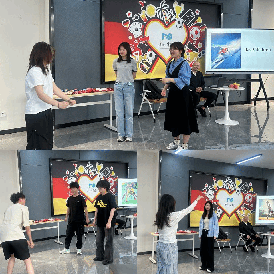 理论碰撞后,活动进入高潮环节——四重沉浸式“语言运动会”。参与者通过肢体表达、团队协作与即兴反应,在运动中激活德语技能。
