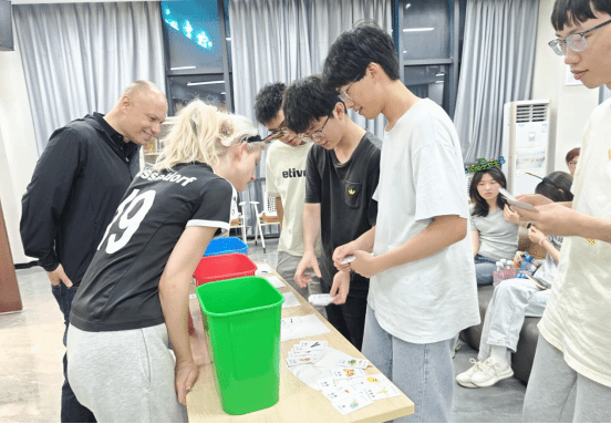 为了让大家在实践中加深对垃圾分类的理解,活动还准备了一些有趣的垃圾分类小游戏。这些游戏以小组形式进行,同学们需要将各种垃圾图片准确分类到不同的垃圾桶中。游戏过程中,同学们积极讨论,互相帮助,不仅提高了垃圾分类的准确性,还增强了团队合作精神。通过游戏,同学们在轻松愉快的氛围中巩固了所学知识,同时也锻炼了德语口语表达能力。