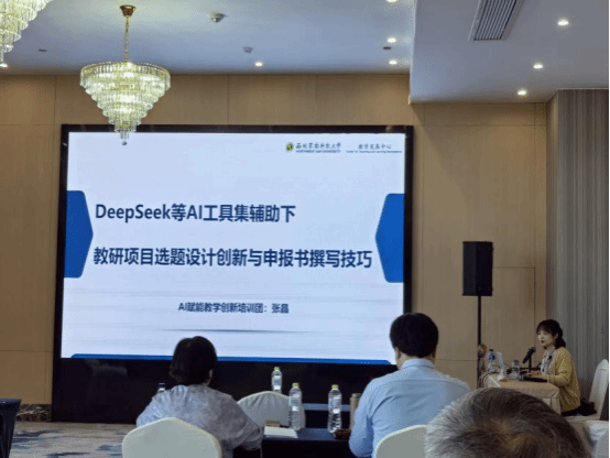 下午,西北农林科技大学信息工程学院副教授、校AI赋能教育教学创新团队培训师张晶老师以“DeepSeek等AI工具集辅助下的教研项目选题设计创新与申报书撰写技巧”为主题开展专题讲座。本次培训聚焦人工智能技术在教研项目申报中的应用实践,为教师提供前沿的科研方法与智能化工具支持。