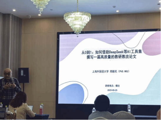 下午,上海外国语大学教授、博士生导师郑新民老师应邀为参训教师开展题为“从0到1——如何借助DeepSeek等AI工具集撰写一篇高质量的教研教改论文”的专题培训。本次讲座聚焦人工智能时代科研范式转型的核心议题,系统阐释了智能工具在学术研究全流程中的创新应用。郑教授系统解析AI技术在文献检索中的革命性突破,演示DeepSeek智能语义检索实现前沿文献精准定位与核心观点提取;创新提出“AI辅助写作ABCD模型”。