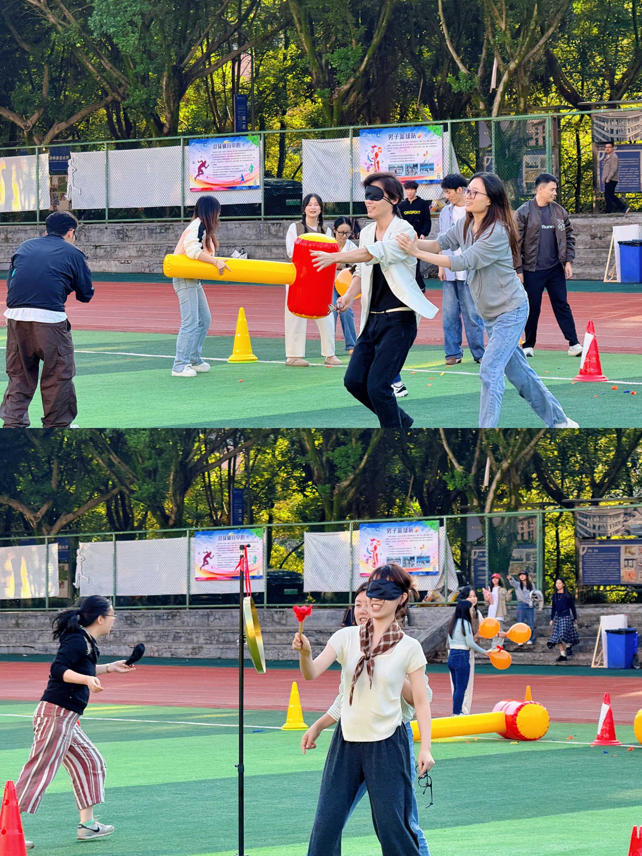 学院全体教职工齐聚一堂,在欢声笑语中共同度过了一个充满活力与温情的下午。本次运动会别出心裁,旨在通过轻松有趣的竞技项目,让老师们在忙碌的教学科研工作之余放松身心、增进情谊。活动设计了“搬砖过河”“一锤定音”和“蒙眼敲锣”等一系列极富趣味性和协作性的接力项目。