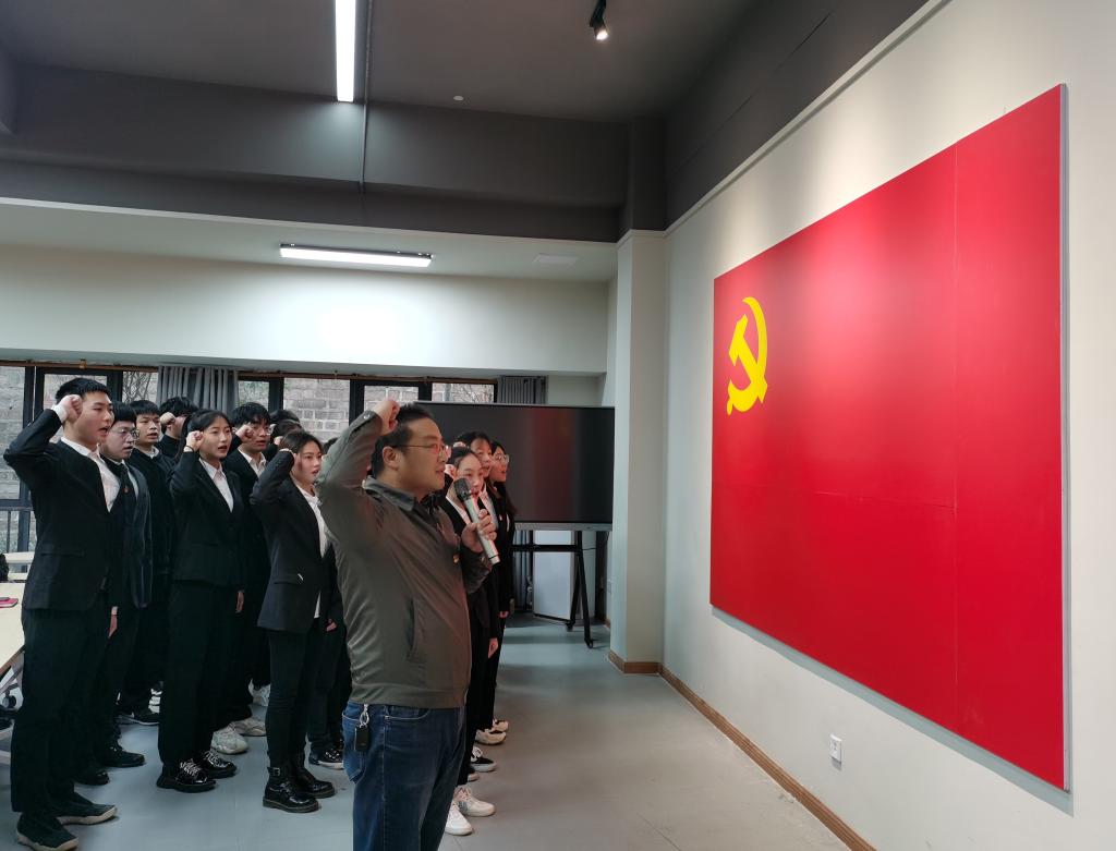 主持人莫晓雯老师宣读了党委的批复和参加宣誓的预备党员名单,对新加入党组织的预备党员表示欢迎。接下来校纪委书记、院总支书记尹浩亮同志和学生支部负责老师们为预备党员们佩戴了党徽。在尹浩亮同志的领誓下,全体新发展预备党员进行了入党宣誓,短短一百多字的誓词抒发对党忠诚的决心,面对着党旗,许下了他们入党后对党的第一个承诺。