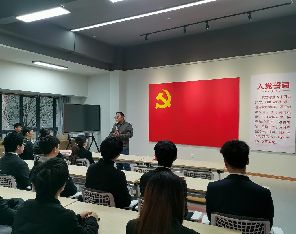 2021年12月10日14:00,我院在南湖书院党团活动室举行了庄严而神圣的2021年秋季学生预备党员入党宣誓活动。参加此次活动的有校纪委书记、院总支书记尹浩亮同志,学生支部委员会的莫晓雯老师,王媛媛老师,肖瑶老师和李倩老师,仪式由学生第一党支部书记莫晓雯老师主持。