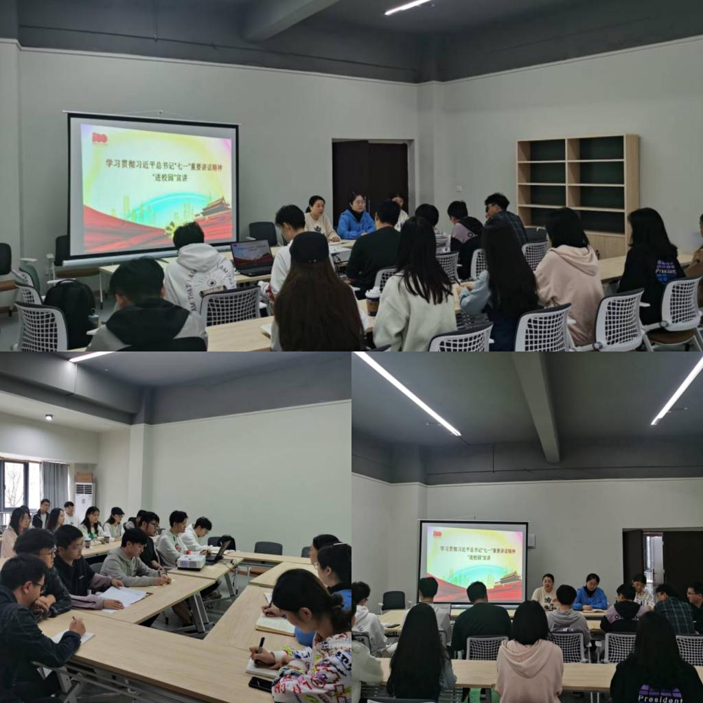 10月15日下午14:20,我院学生党支部在南湖书院党建活动室召开党史学习会,会议由支部书记莫晓雯主持,重温了习近平总书记“七一”重要讲话精神。