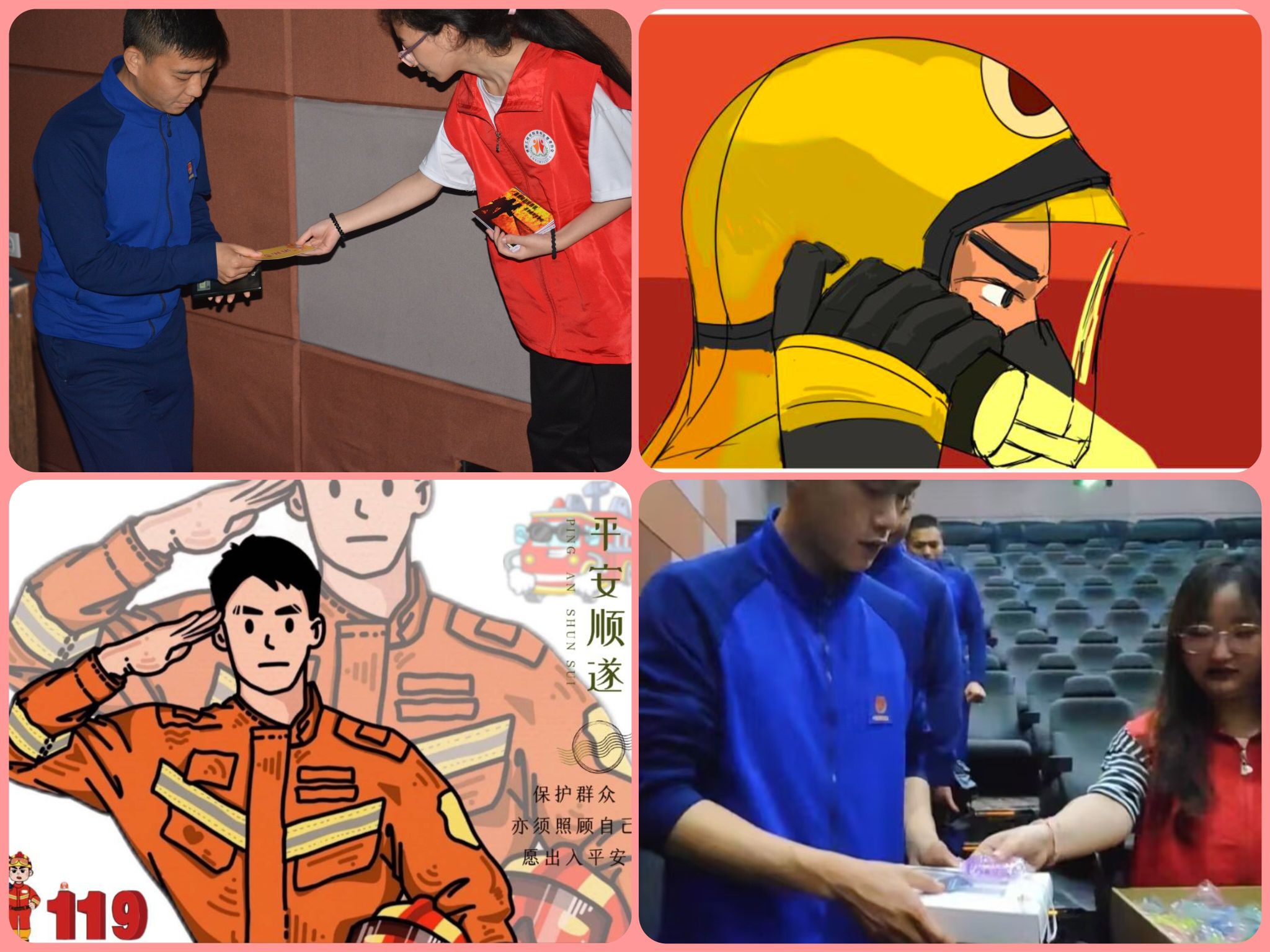 他们,是负重前行,护得一方静好的平凡英雄;是顶着烈日,冒着风雨守在街头的平凡英雄;是奋不顾身,流汗流血救护生命的平凡英雄。是他们,为需要的人们送去希望和温暖,作为志愿者的我们,更应该以己之力,奉献青春,在服务社会的同时承担起更多的责任与使命,携手共筑中国红。活动最后,志愿者们为救援战士们送上同学们设计的明信片与礼物,伴着寄语与祝福,愿救援战士们平安顺遂,保护群众的同时亦须照顾好自己!