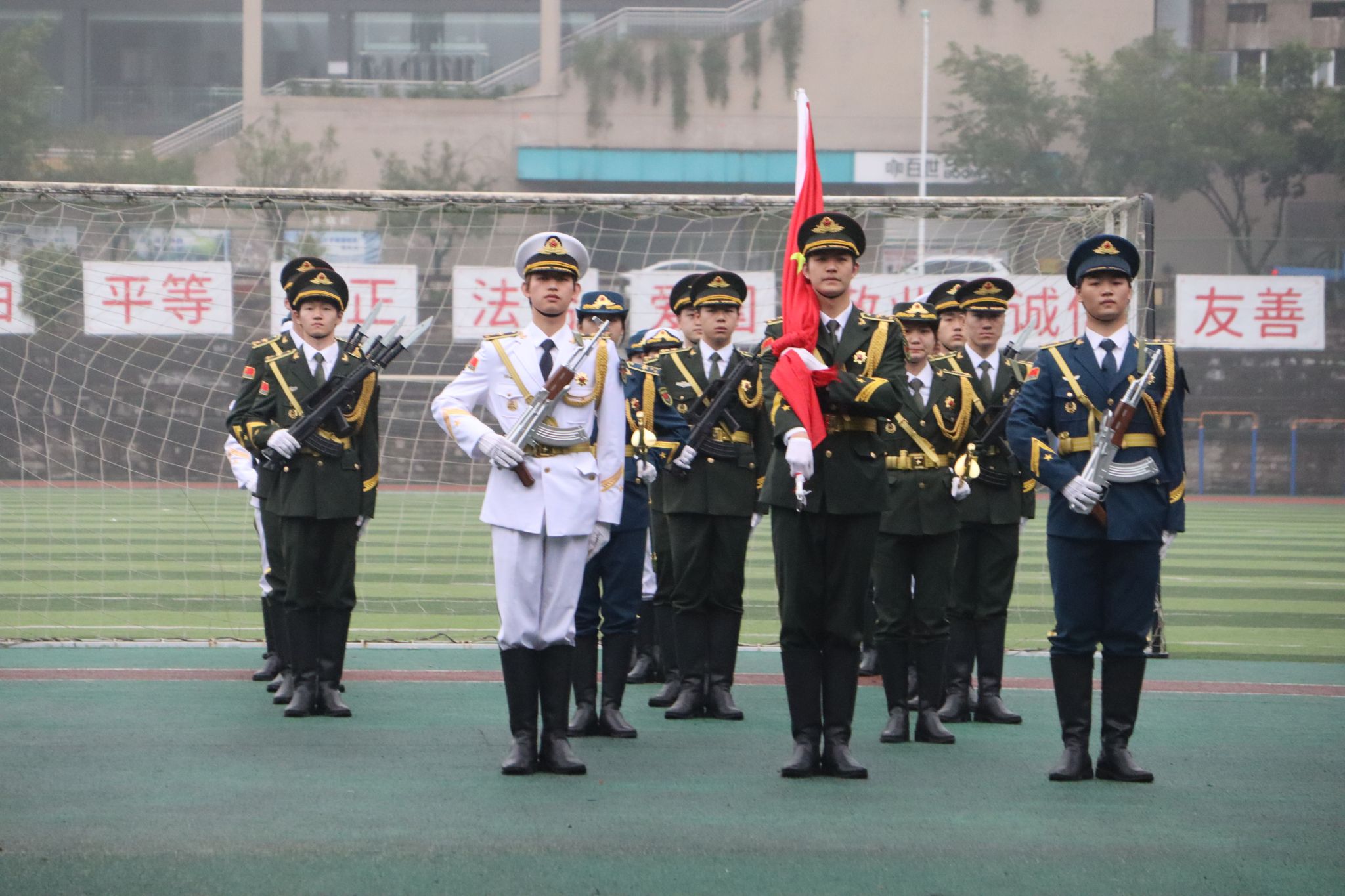 为加强爱国主义和社会主义核心价值观教育,引导广大师生不忘初心、牢记使命,为中国式现代化建设和中华民族的伟大复兴贡献青春力量,4月8日早上7:10,德国工程学院全体师生在田径场举行了隆重而庄严的升国旗仪式。
