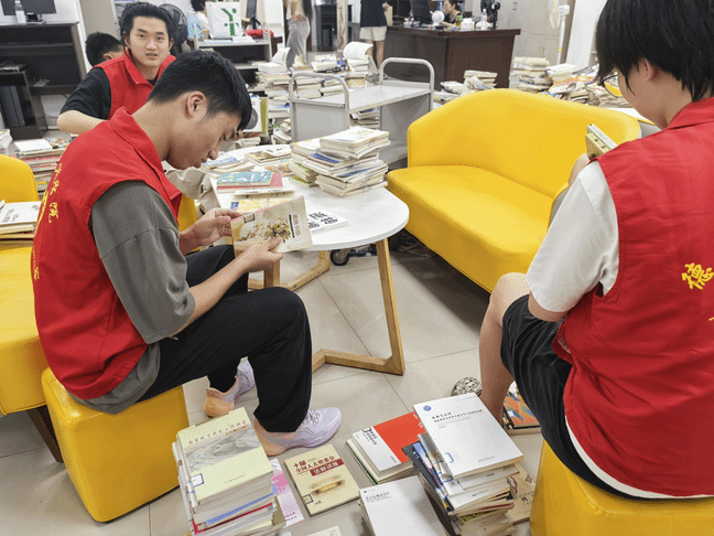 随后,在工作人员的安排下,志愿者们分为若干小组,投入到紧张而有序的工作中。他们穿梭于一排排书架之间,耐心细致地检查每本书的索书号,将错放、乱放的书籍重新归位,确保其排列整齐、分类准确。对于新归还的图书,同学们也认真负责地完成扫描、分类和运送至对应区域的工作。整个过程虽然繁琐,但志愿者们始终保持着高度的热情和专注,相互协作,高效地完成了分配的任务。