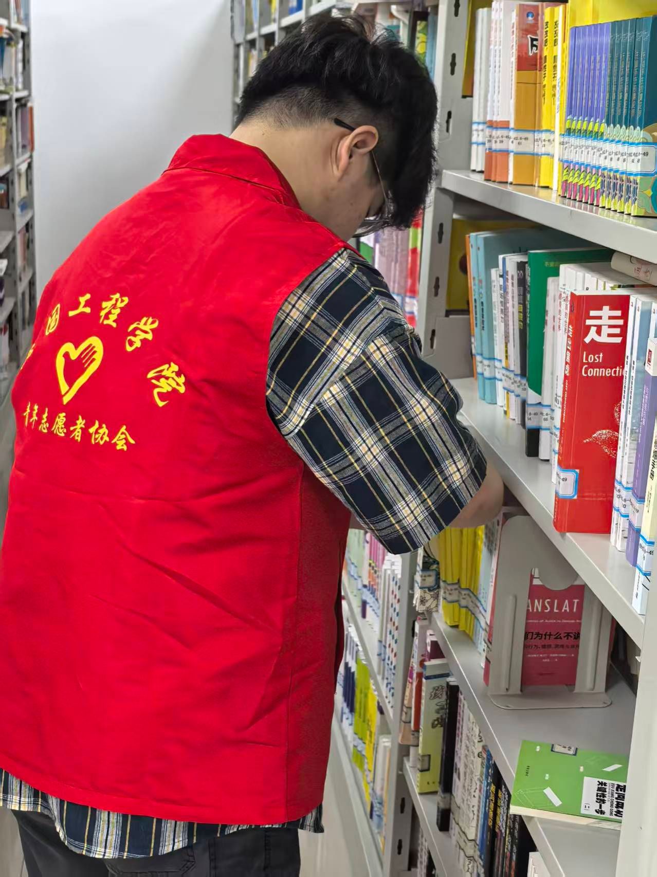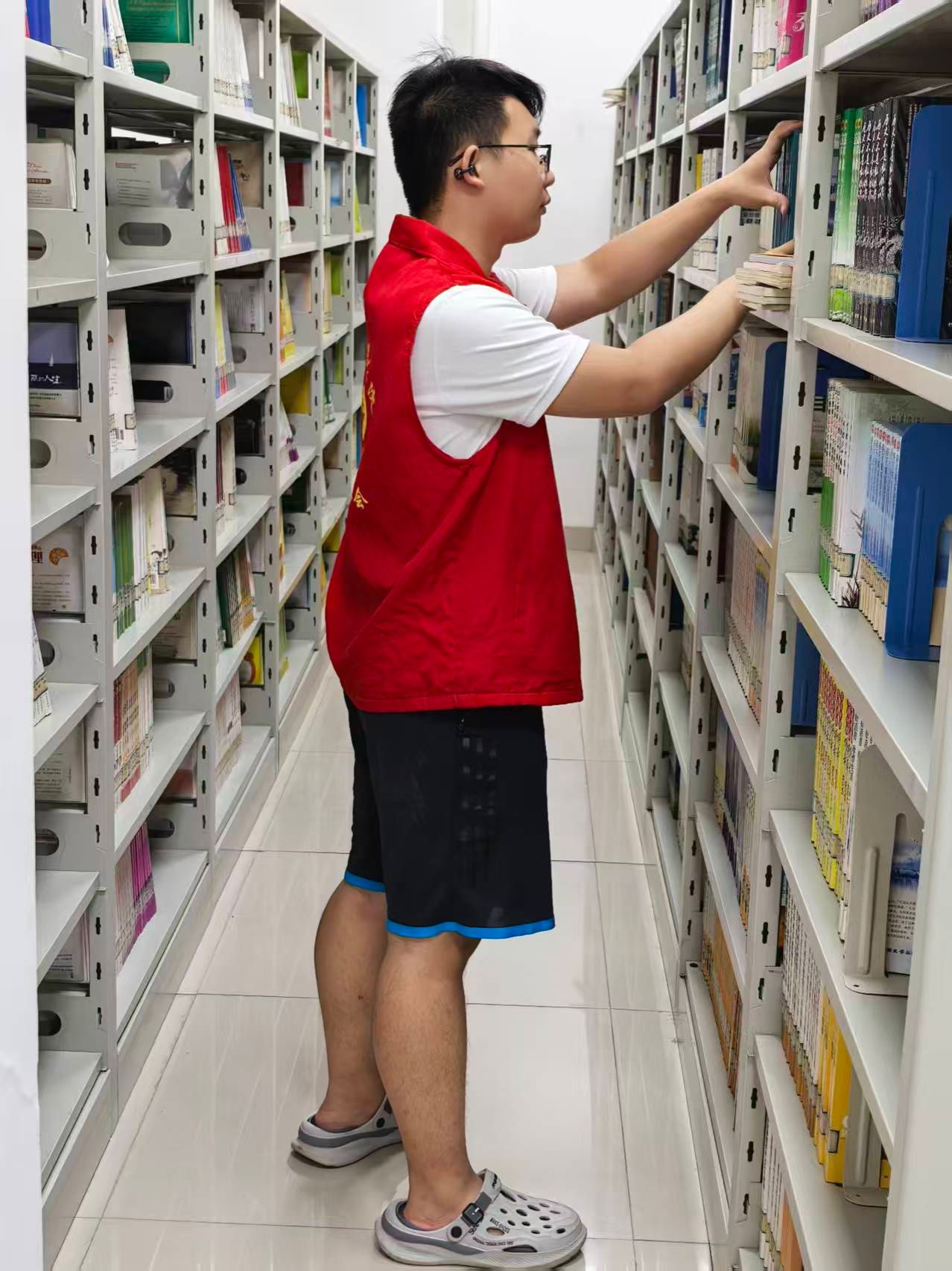 过程中,志愿者们不顾书架间的闷热,始终保持专注,额角渗出汗水也只是简单擦拭后继续投入。期间,有读者询问图书位置,志愿者们还主动上前提供指引,协助对方快速找到目标书籍,用热情服务为活动增添了温暖色彩。