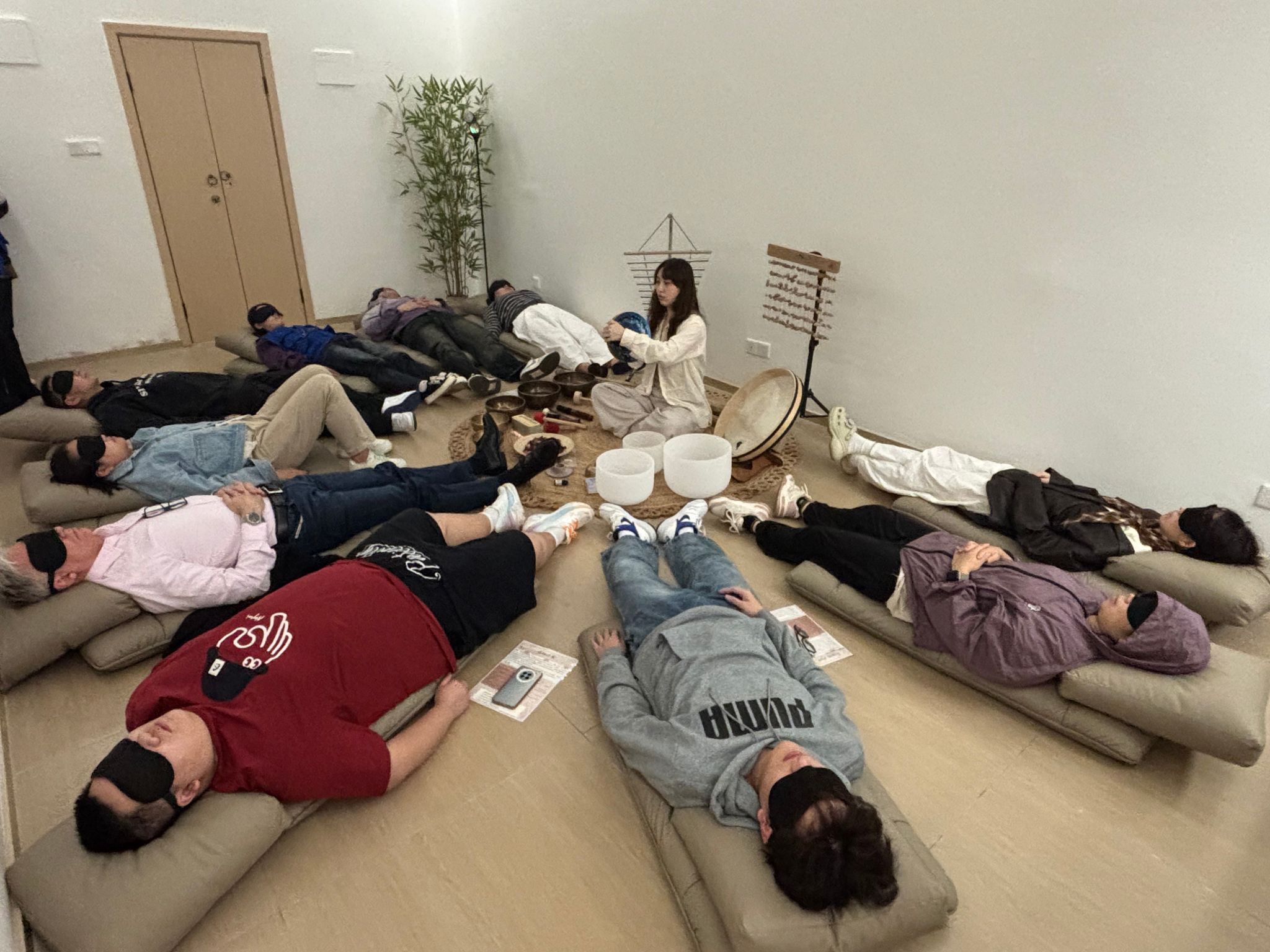 Nils教授分享到首先感谢这个活动提供一个安静舒适的场域,让大家聚在一起享受一次精神疗愈。在整个体验过程中,感受到不同类型的颂钵传递给身体不同的能量。在躺着的时候,当颂钵放在肚子上时,全身得到放松,内在的能量与颂钵产生同频共振。这是一趟精神的放松之旅,让我回归当下,清空了所有杂念,期待再次体验。